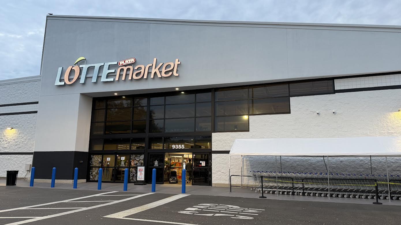 Pictured: A view of the front of Lotte Market from the parking lot